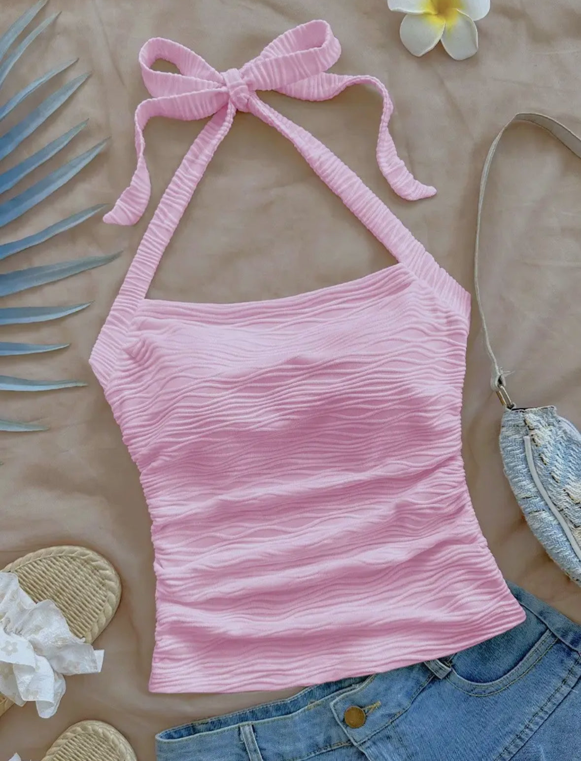 Bow Tie Halter Neck Crop Top
